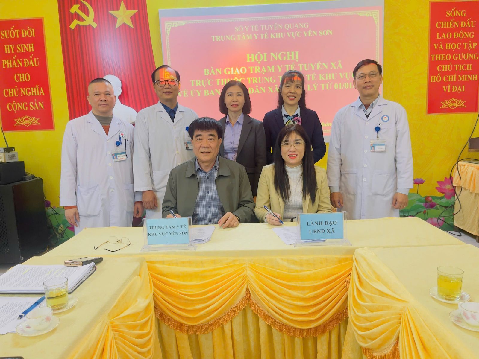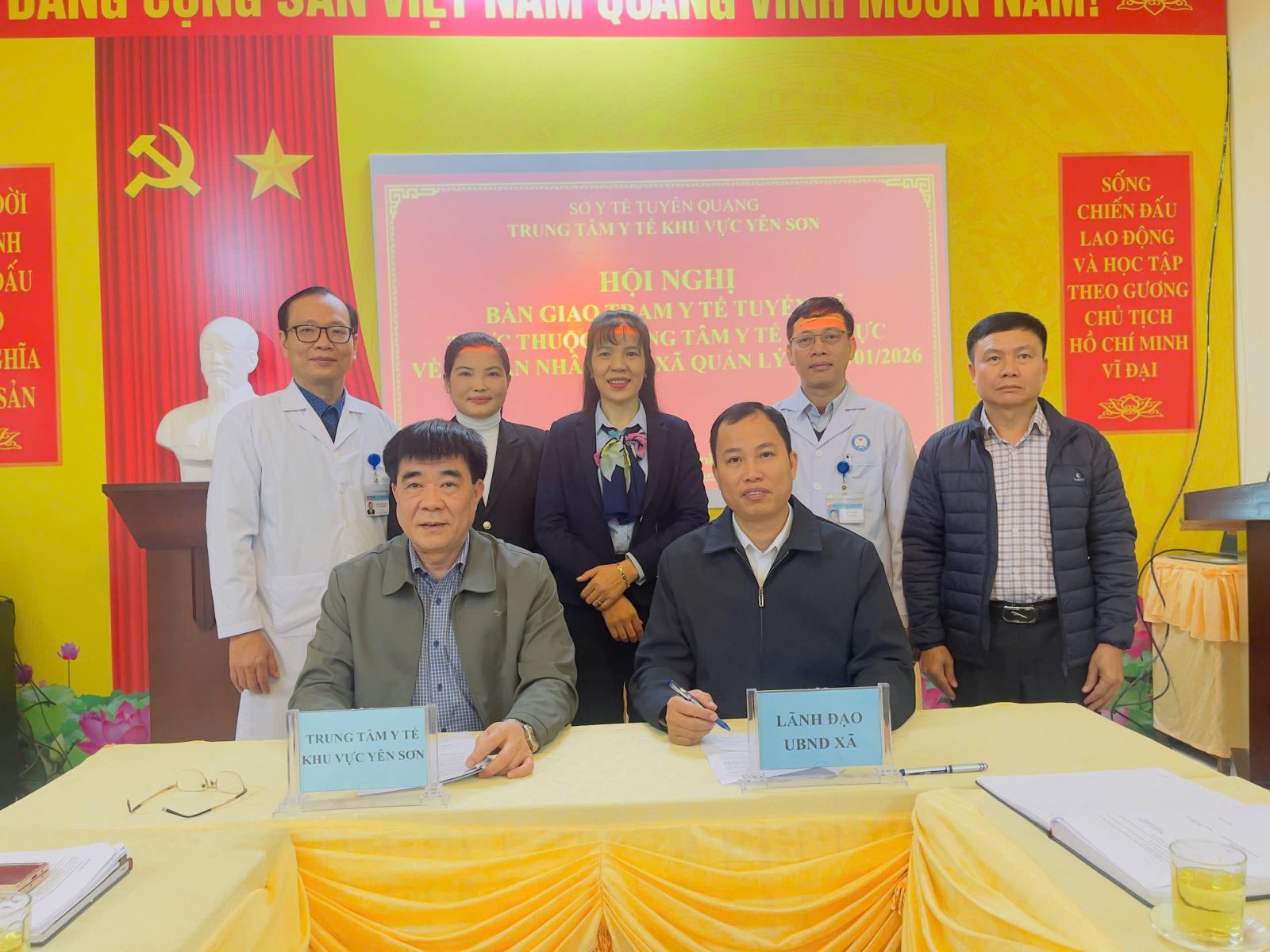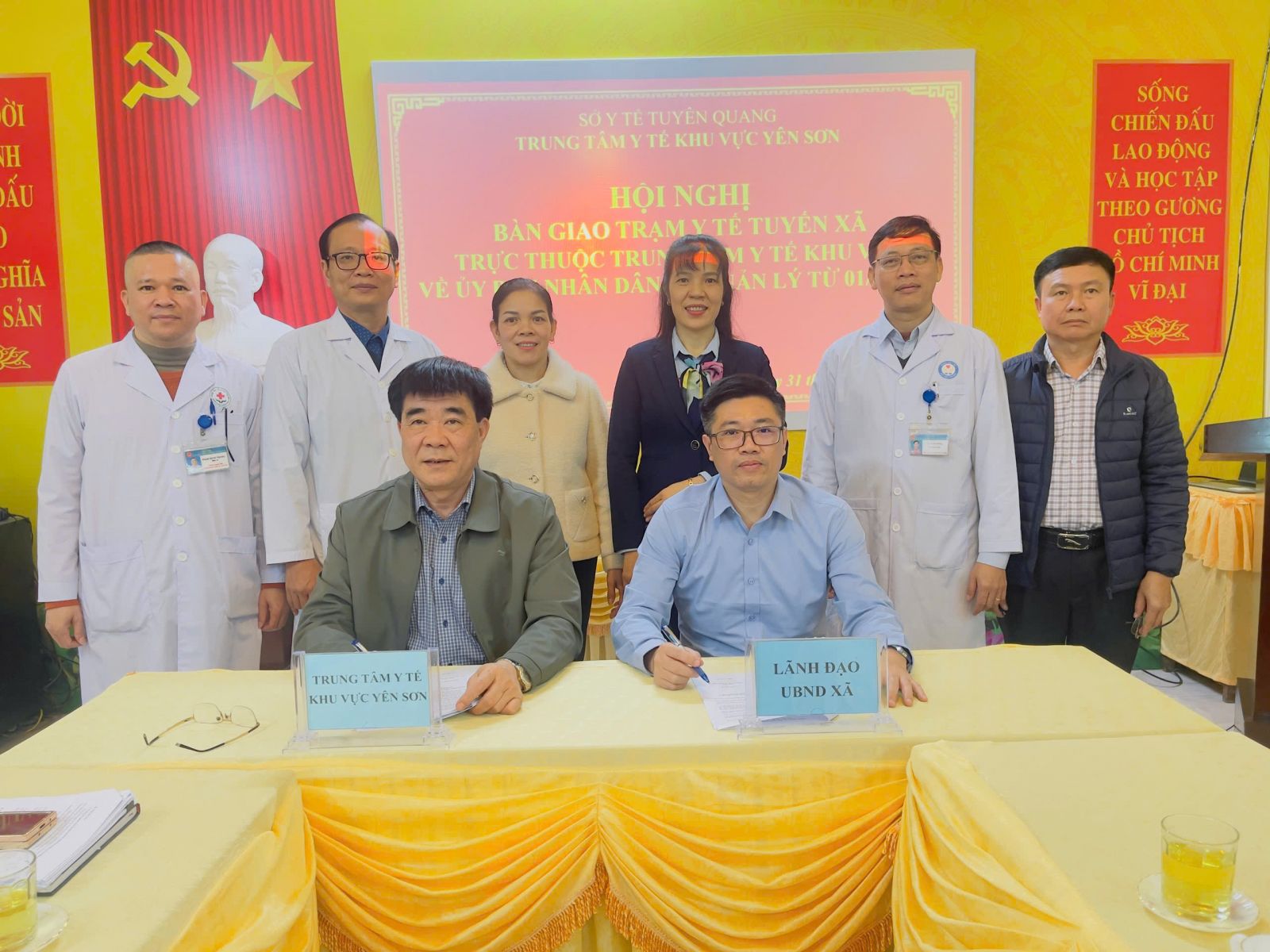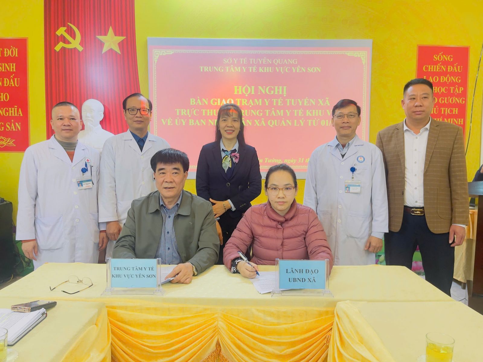Thực hiện theo Quyết định số 1723/QĐ-UBND ngày 30/12/2025 của UBND tỉnh Tuyên Quang và Chỉ đạo của Lãnh đạo Sở Y tế về việc sắp xếp chuyển giao các Trạm y tế xã và Phòng khám đa khoa khu vực về UBND các xã, phường quản lý. Trung tâm Y tế khu vực Yên Sơn tổ chức hội nghị bàn giao các Trạm y tế xã, Phòng khám đa khoa khu vực thuộc Trung tâm về UBND xã, phường quản lý.